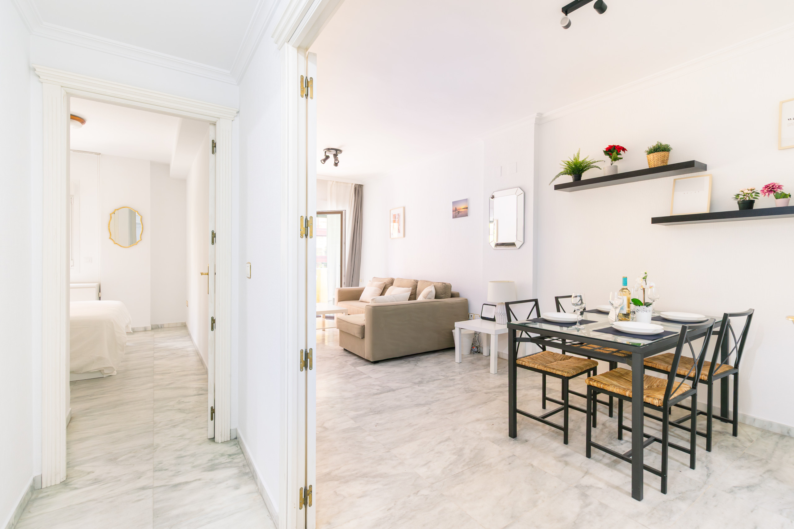 Elegante apartamento minimalista en el corazón de Sevilla, perfecto para cuatro personas. Cuenta con dos dormitorios con camas dobles, una decoración cuidada y un ambiente acogedor. Su ubicación, a pocos pasos de Las Setas y la Alfalfa, te permite disfrutar del encanto y la vida vibrante del centro de la ciudad con total comodidad.