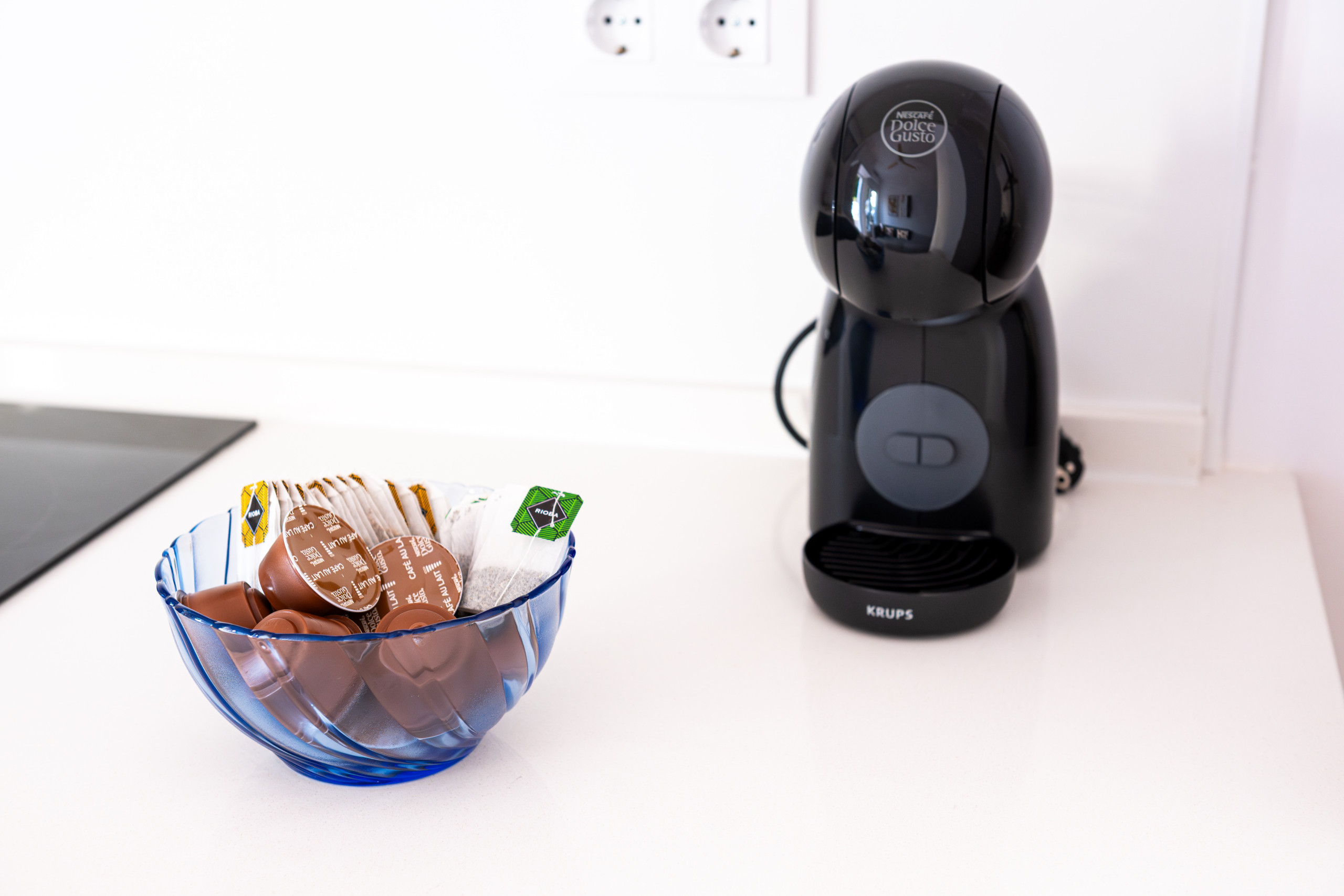 In the induction open plan kitchen, refrigerator, microwave, freezer, dishes/cutlery, kitchen utensils, coffee machine, toaster, kettle and juicer are provided.