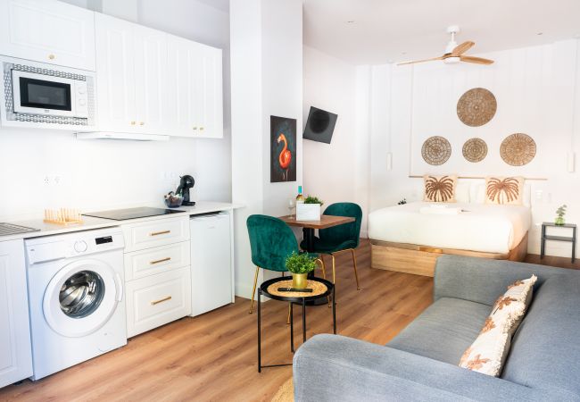 The apartment in Seville has 1 bedrooms and has capacity for 2 people. The apartment is 25 m². The accommodation is equipped with the following items: washing machine, iron, internet (Wi-Fi), hair dryer, air-conditioned, 1 fan, TV, satellite tv (Languages: Spanish, English).In the induction open plan kitchen, refrigerator, microwave, freezer, dishes/cutlery, kitchen utensils, coffee machine, toaster, kettle and juicer are provided.
